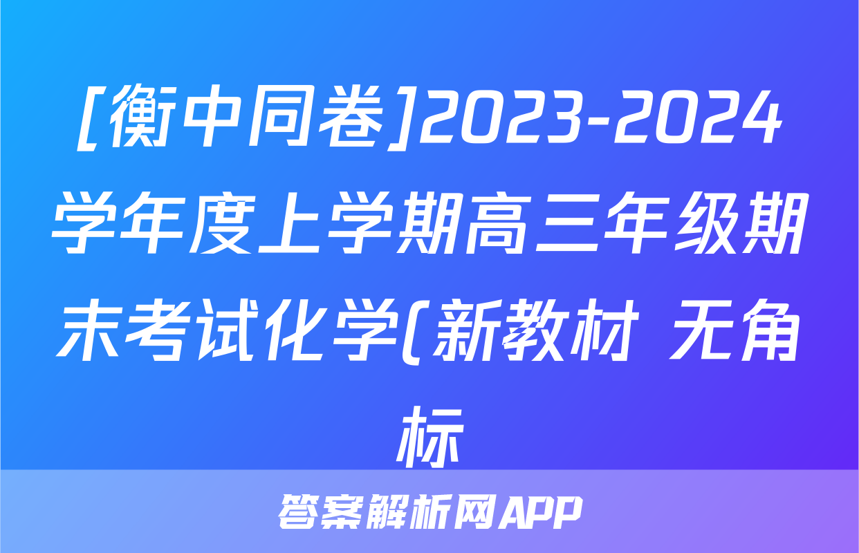 [衡中同卷]2023-2024学年度上学期高三年级期末考试化学(新教材 无角标)试题正在持续更新,目前2026天舟高考答案网为大家整理了相关试题及答案,供大家查缺补漏,高效提升成绩。