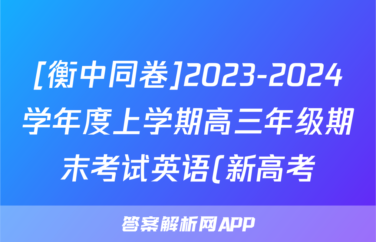 [衡中同卷]2023-2024学年度上学期高三年级期末考试英语(新高考)试题正在持续更新,目前2026天舟高考答案网为大家整理了相关试题及答案,供大家查缺补漏,高效提升成绩。