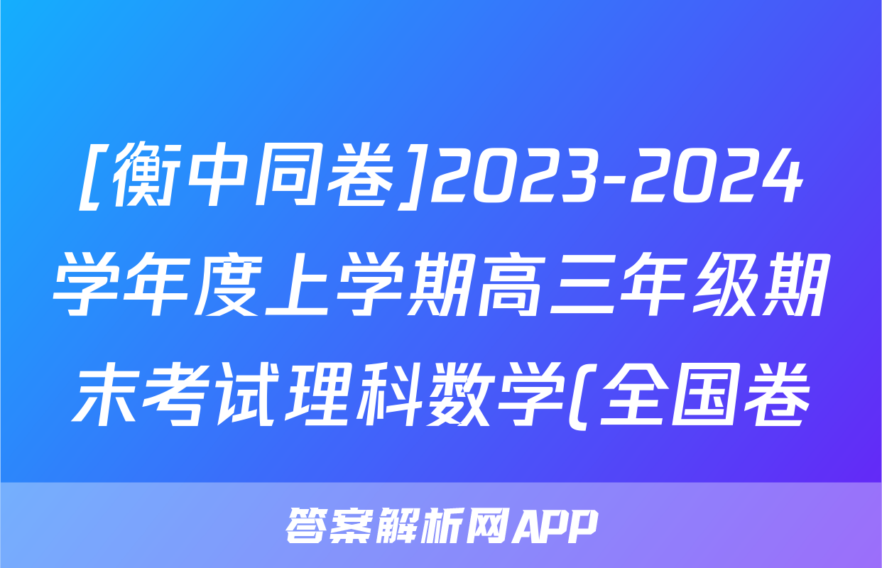 [衡中同卷]2023-2024学年度上学期高三年级期末考试理科数学(全国卷)答案正在持续更新,目前2026天舟高考答案网为大家整理了相关试题及答案,供大家查缺补漏,高效提升成绩。