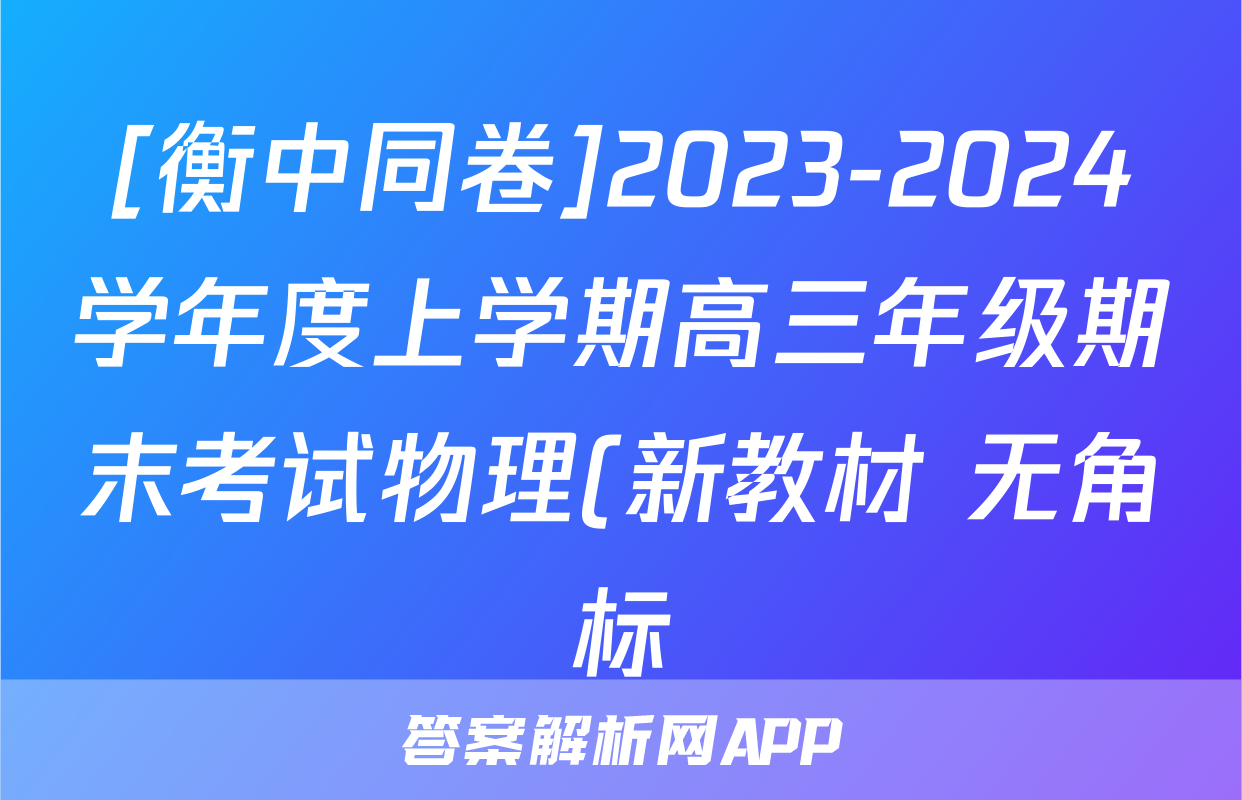[衡中同卷]2023-2024学年度上学期高三年级期末考试物理(新教材 无角标)试题正在持续更新,目前2026天舟高考答案网为大家整理了相关试题及答案,供大家查缺补漏,高效提升成绩。
