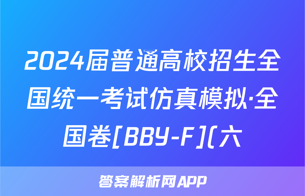 2024届普通高校招生全国统一考试仿真模拟·全国卷[BBY-F](六)6理科综合试题正在持续更新,目前2026天舟高考答案网为大家整理了相关试题及答案,供大家查缺补漏,高效提升成绩。
