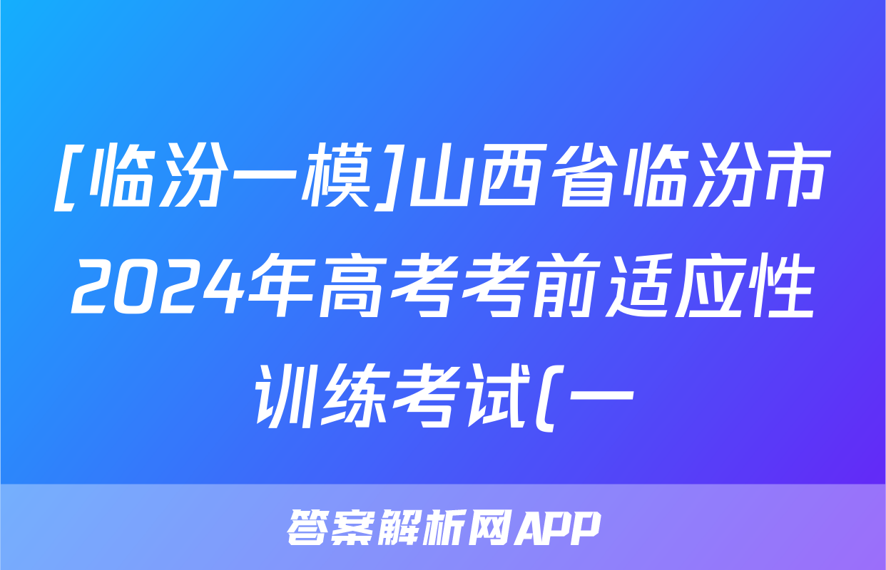 [临汾一模]山西省临汾市2024年高考考前适应性训练考试(一)1英语答案正在持续更新,目前2026天舟高考答案网为大家整理了相关试题及答案,供大家查缺补漏,高效提升成绩。
