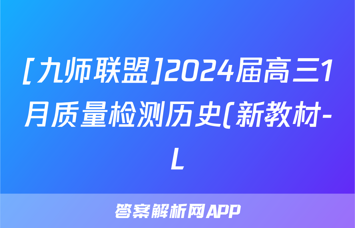 [九师联盟]2024届高三1月质量检测历史(新教材-L)答案正在持续更新,目前2026天舟高考答案网为大家整理了相关试题及答案,供大家查缺补漏,高效提升成绩。