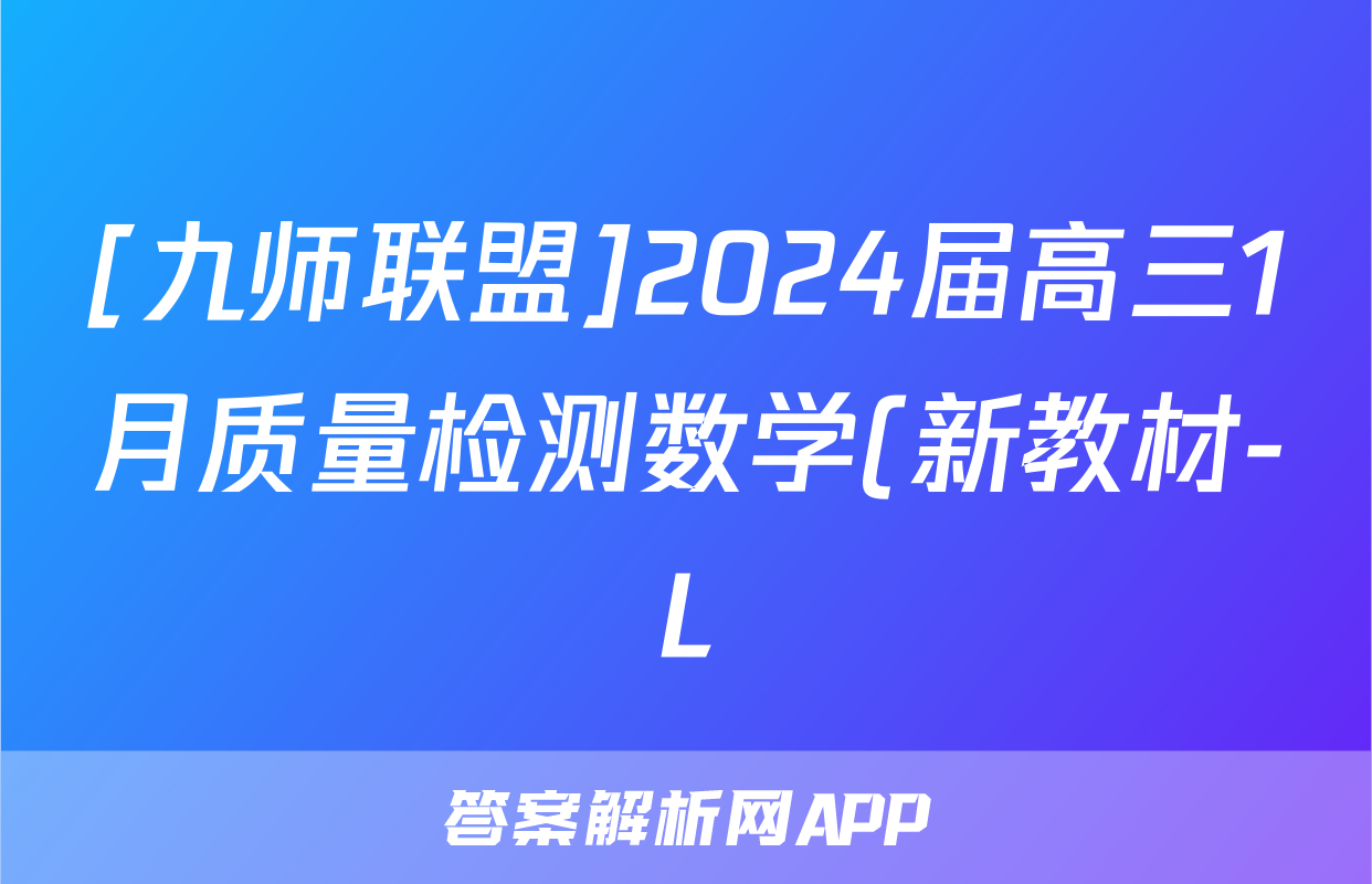 [九师联盟]2024届高三1月质量检测数学(新教材-L)试题正在持续更新,目前2026天舟高考答案网为大家整理了相关试题及答案,供大家查缺补漏,高效提升成绩。