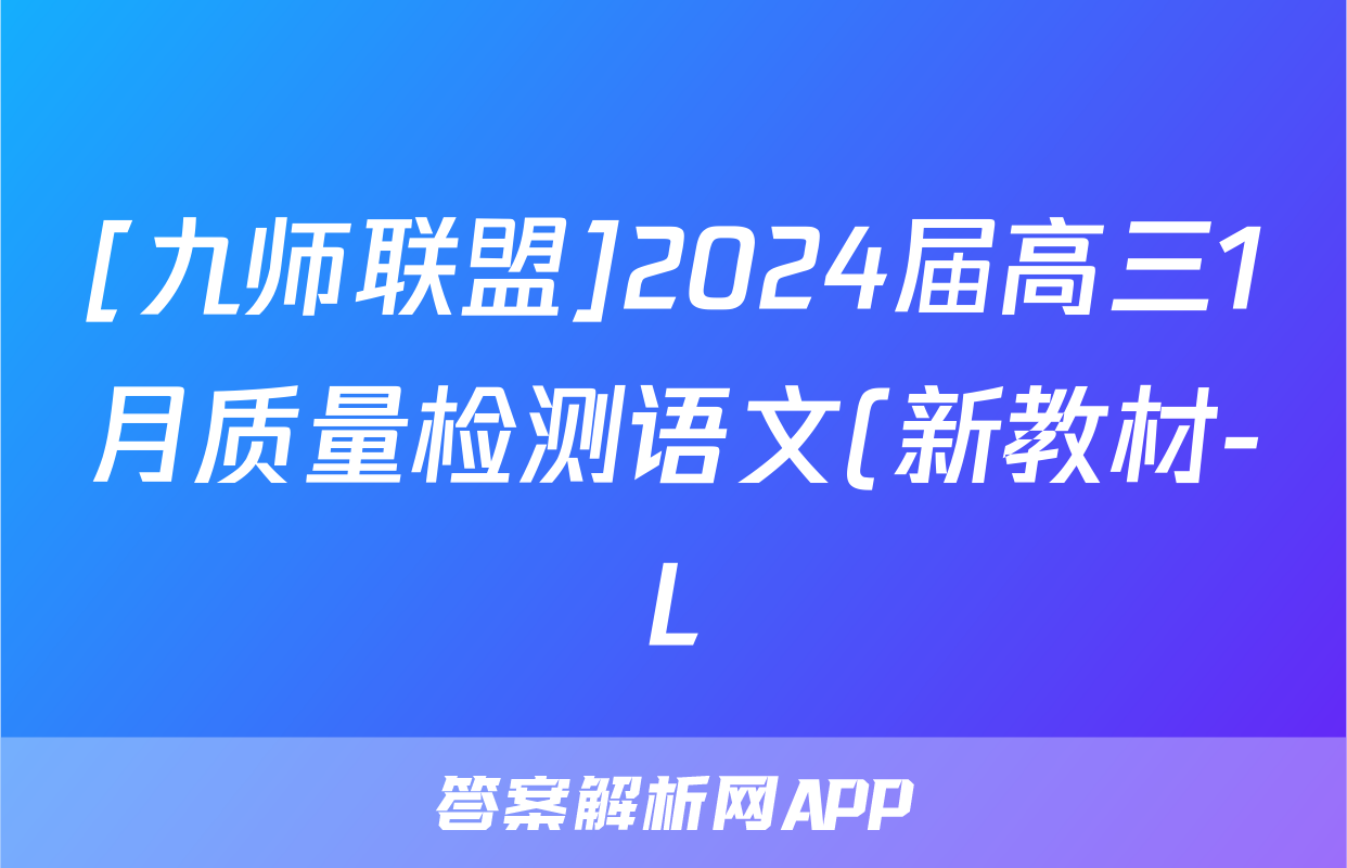 [九师联盟]2024届高三1月质量检测语文(新教材-L)试题正在持续更新,目前2026天舟高考答案网为大家整理了相关试题及答案,供大家查缺补漏,高效提升成绩。