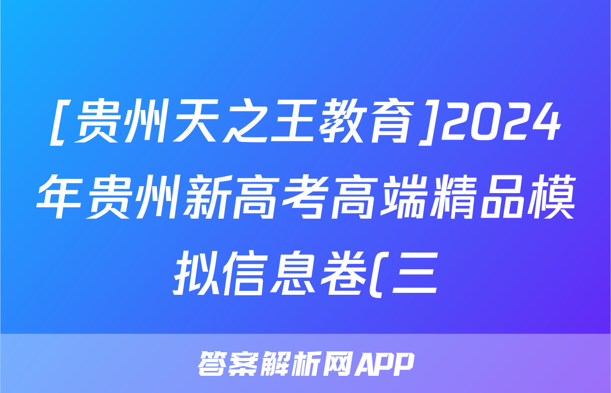 4、贵州天之王教育 2024年贵州新高考高端精品模拟信息卷(三)3政治试题