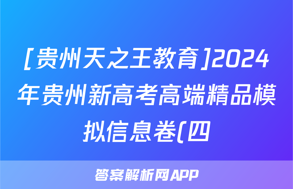 [贵州天之王教育]2024年贵州新高考高端精品模拟信息卷(四)4生物试题正在持续更新,目前2026天舟高考答案网为大家整理了相关试题及答案,供大家查缺补漏,高效提升成绩。