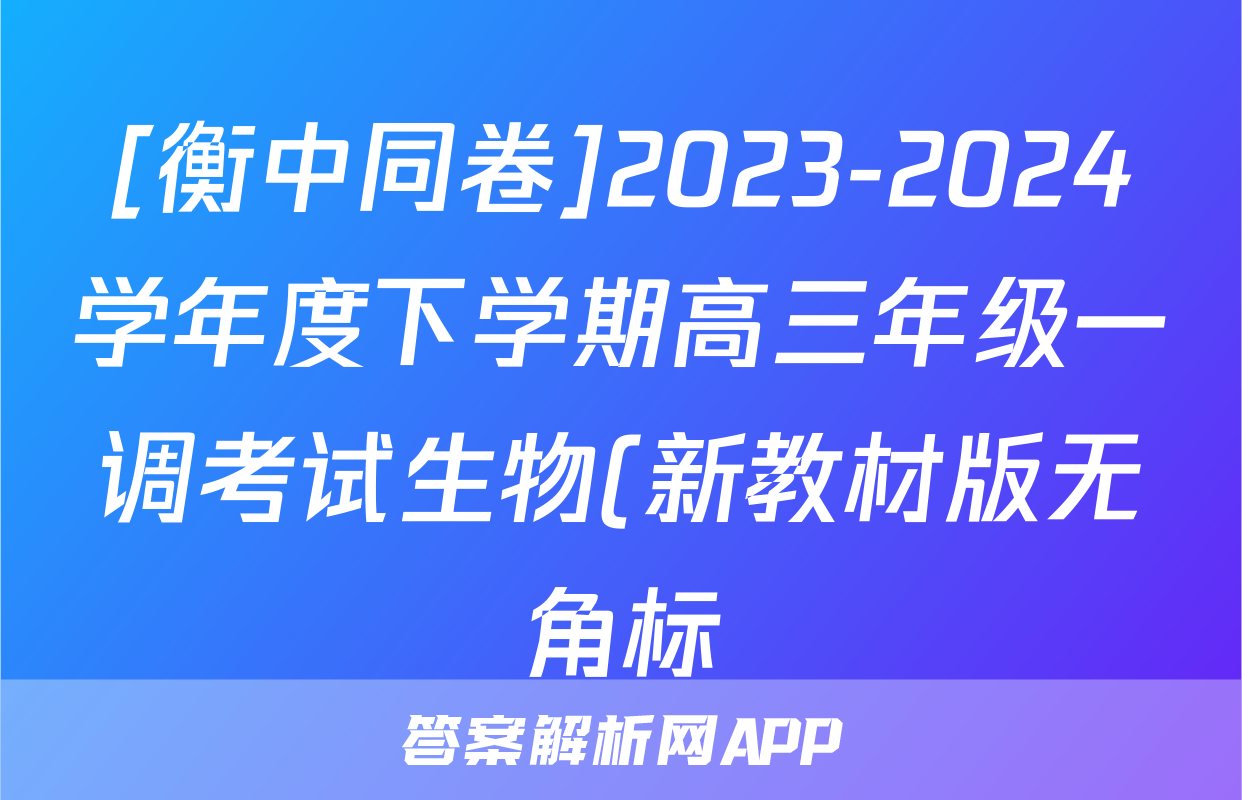 [衡中同卷]2023-2024学年度下学期高三年级一调考试生物(新教材版无角标)试题正在持续更新,目前2026天舟高考答案网为大家整理了相关试题及答案,供大家查缺补漏,高效提升成绩。