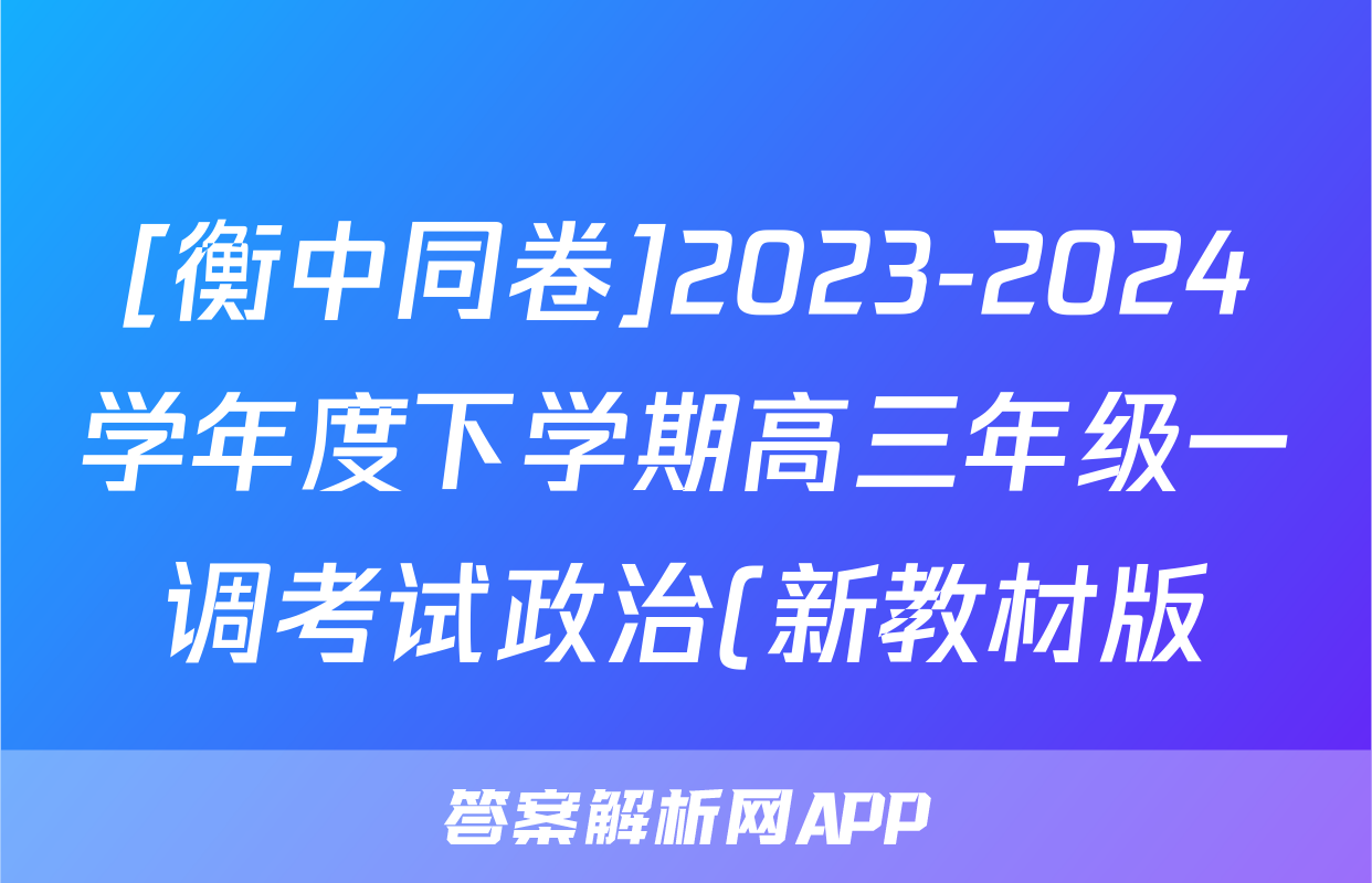 [衡中同卷]2023-2024学年度下学期高三年级一调考试政治(新教材版)试题正在持续更新,目前2026天舟高考答案网为大家整理了相关试题及答案,供大家查缺补漏,高效提升成绩。