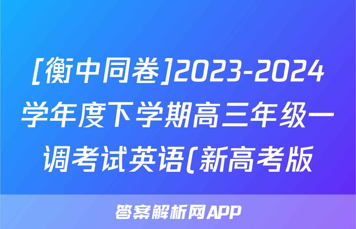 [衡中同卷]2023-2024学年度下学期高三年级一调考试英语(新高考版)试题正在持续更新,目前2026天舟高考答案网为大家整理了相关试题及答案,供大家查缺补漏,高效提升成绩。