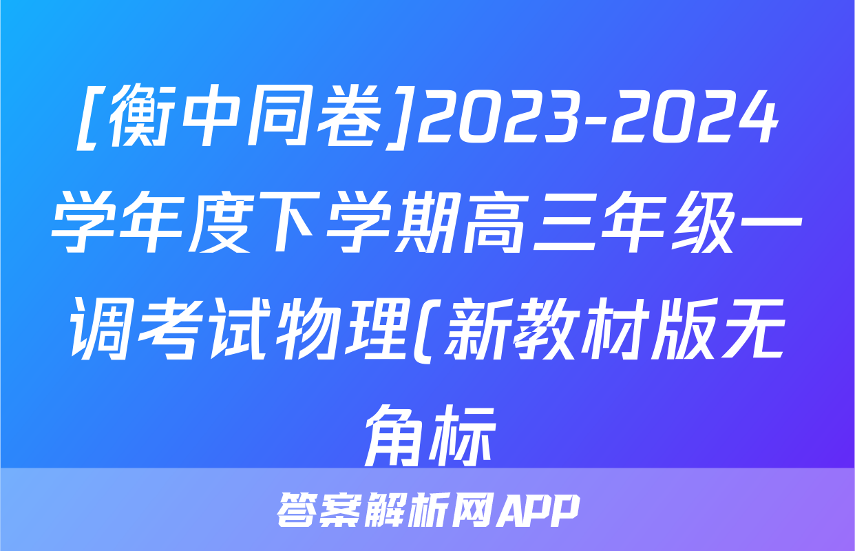 [衡中同卷]2023-2024学年度下学期高三年级一调考试物理(新教材版无角标)试题正在持续更新,目前2026天舟高考答案网为大家整理了相关试题及答案,供大家查缺补漏,高效提升成绩。