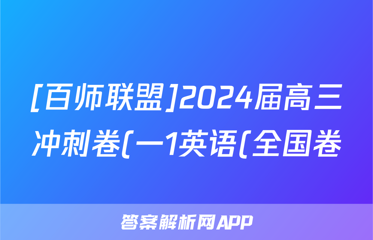 [百师联盟]2024届高三冲刺卷(一1英语(全国卷)试题正在持续更新,目前2026天舟高考答案网为大家整理了相关试题及答案,供大家查缺补漏,高效提升成绩。