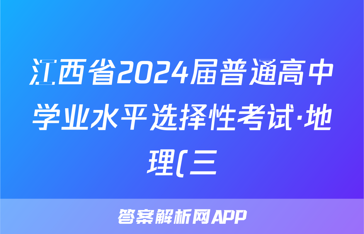 江西省2024届普通高中学业水平选择性考试·地理(三)3[24·(新高考)ZX·MNJ·地理·JX]试题正在持续更新,目前2026天舟高考答案网为大家整理了相关试题及答案,供大家查缺补漏,高效提升成绩。