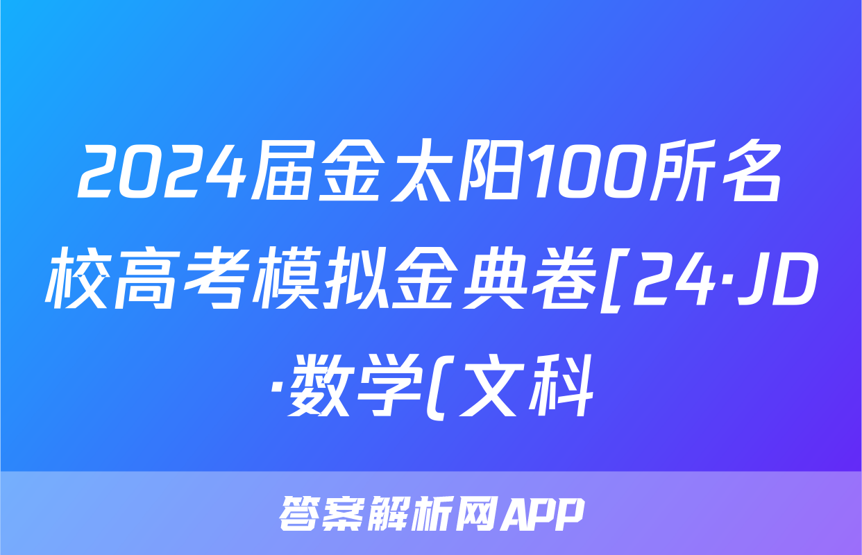 2024届金太阳100所名校高考模拟金典卷[24·JD·数学(文科)-QG]文科数学(十)10答案正在持续更新,目前2026天舟高考答案网为大家整理了相关试题及答案,供大家查缺补漏,高效提升成绩。
