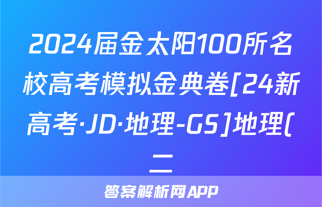 2024届金太阳100所名校高考模拟金典卷[24新高考·JD·地理-GS]地理(二)2答案正在持续更新,目前2026天舟高考答案网为大家整理了相关试题及答案,供大家查缺补漏,高效提升成绩。