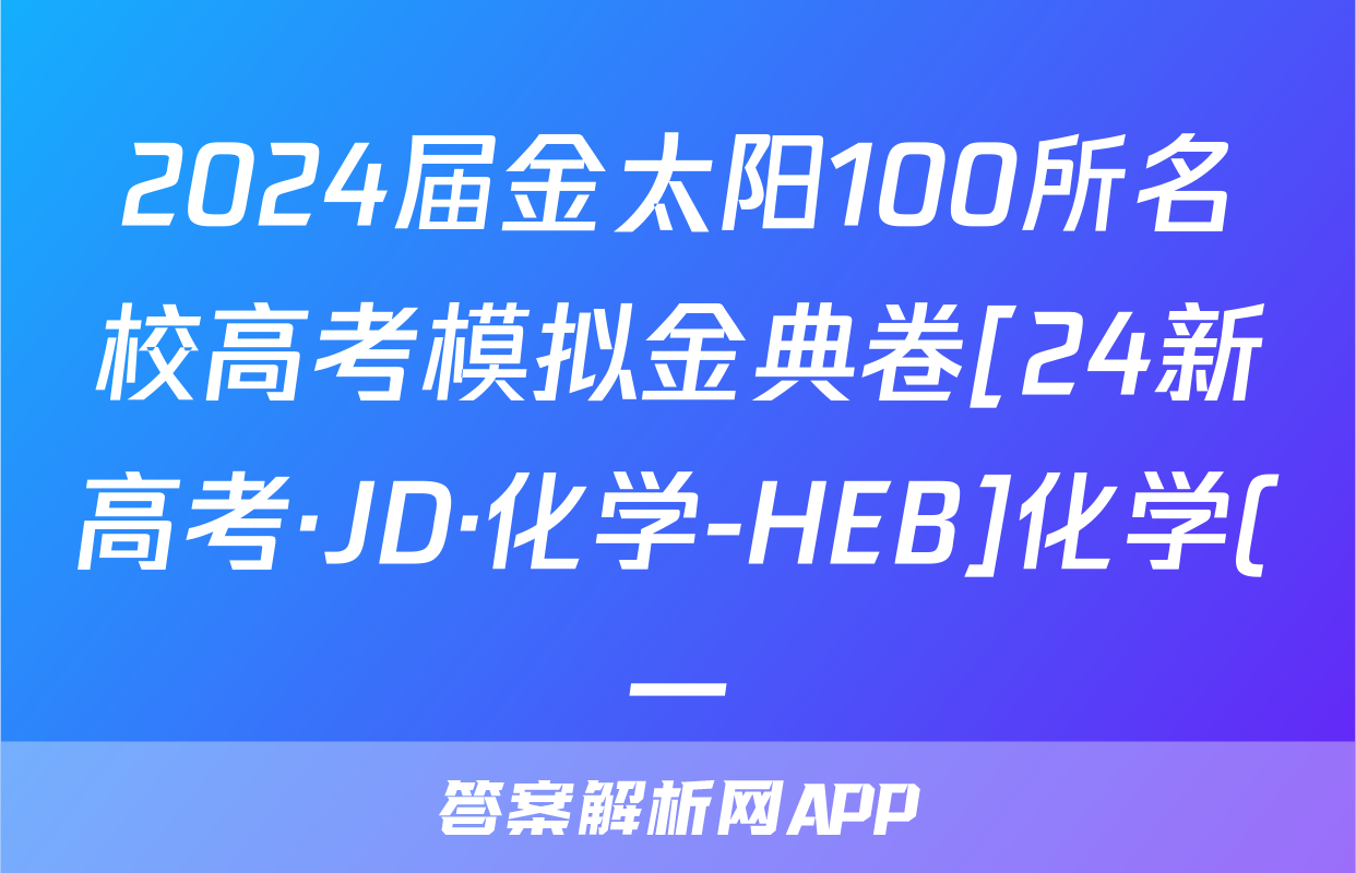 2024届金太阳100所名校高考模拟金典卷[24新高考·JD·化学-HEB]化学(一)1答案正在持续更新,目前2026天舟高考答案网为大家整理了相关试题及答案,供大家查缺补漏,高效提升成绩。