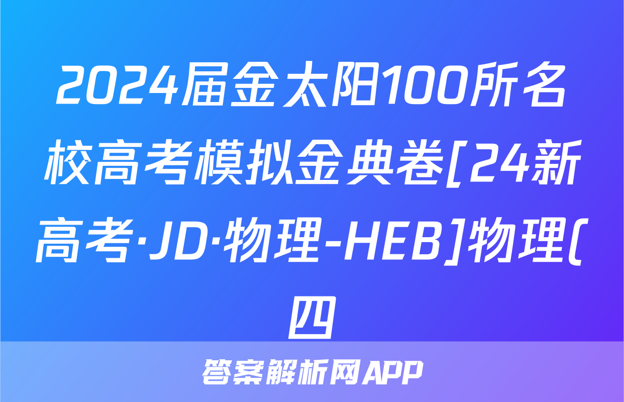 2024届金太阳100所名校高考模拟金典卷[24新高考·JD·物理-HEB]物理(四)4答案正在持续更新,目前2026天舟高考答案网为大家整理了相关试题及答案,供大家查缺补漏,高效提升成绩。