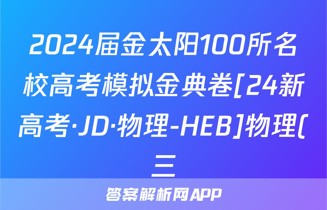2024届金太阳100所名校高考模拟金典卷[24新高考·JD·物理-HEB]物理(三)3答案正在持续更新,目前2026天舟高考答案网为大家整理了相关试题及答案,供大家查缺补漏,高效提升成绩。