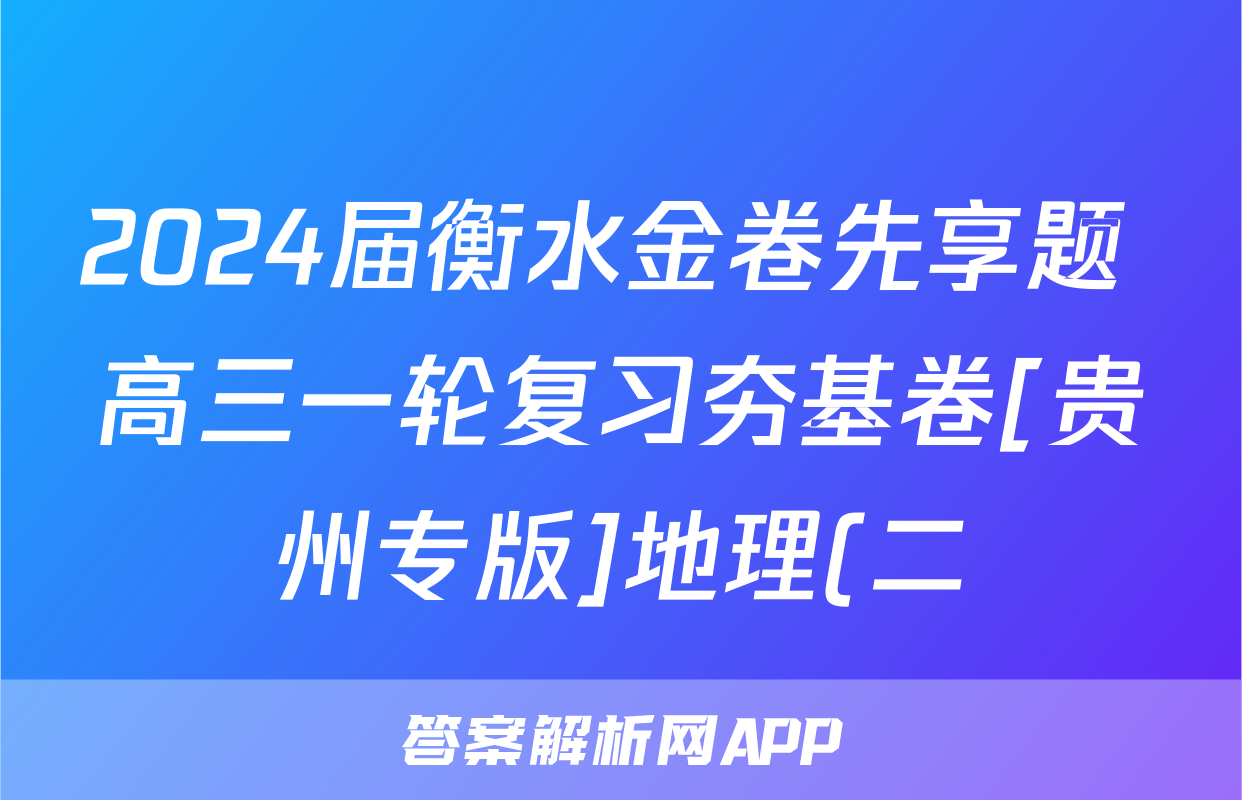 2024届衡水金卷先享题 高三一轮复习夯基卷[贵州专版]地理(二)2试题正在持续更新,目前2026天舟高考答案网为大家整理了相关试题及答案,供大家查缺补漏,高效提升成绩。