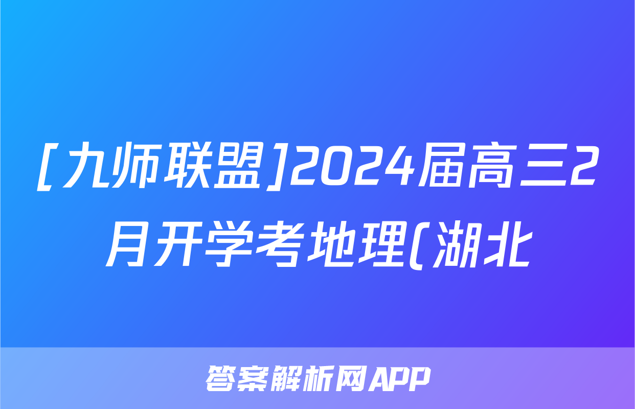 [九师联盟]2024届高三2月开学考地理(湖北)答案正在持续更新,目前2026天舟高考答案网为大家整理了相关试题及答案,供大家查缺补漏,高效提升成绩。