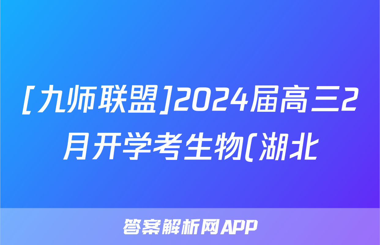 [九师联盟]2024届高三2月开学考生物(湖北)答案正在持续更新,目前2026天舟高考答案网为大家整理了相关试题及答案,供大家查缺补漏,高效提升成绩。