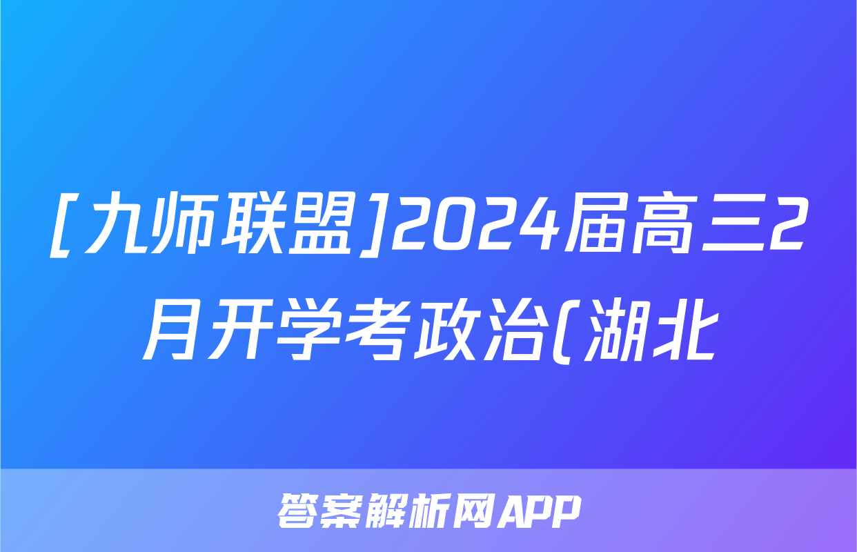 [九师联盟]2024届高三2月开学考政治(湖北)试题正在持续更新,目前2026天舟高考答案网为大家整理了相关试题及答案,供大家查缺补漏,高效提升成绩。