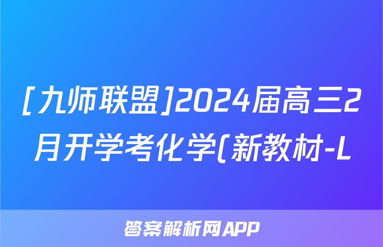[九师联盟]2024届高三2月开学考化学(新教材-L)答案正在持续更新,目前2026天舟高考答案网为大家整理了相关试题及答案,供大家查缺补漏,高效提升成绩。