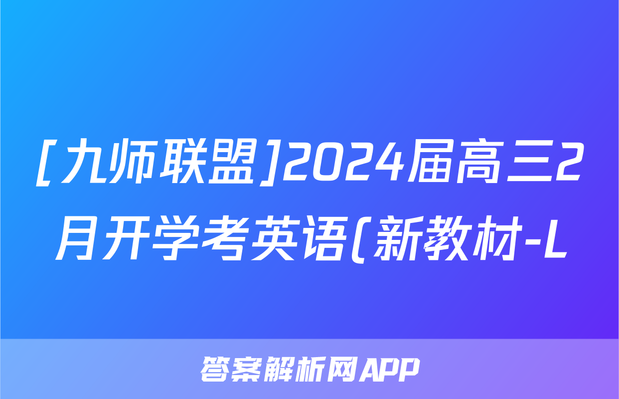 [九师联盟]2024届高三2月开学考英语(新教材-L)试题正在持续更新,目前2026天舟高考答案网为大家整理了相关试题及答案,供大家查缺补漏,高效提升成绩。