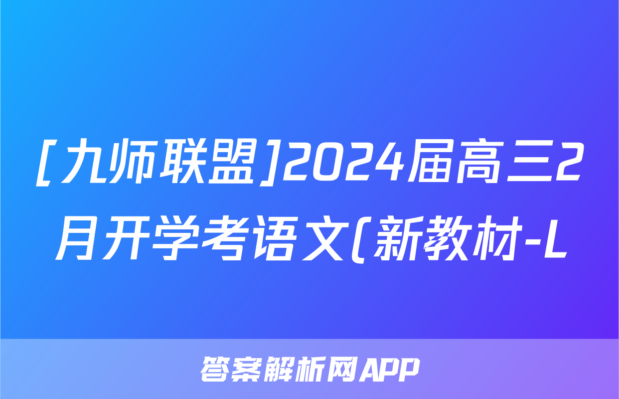 [九师联盟]2024届高三2月开学考语文(新教材-L)试题正在持续更新,目前2026天舟高考答案网为大家整理了相关试题及答案,供大家查缺补漏,高效提升成绩。