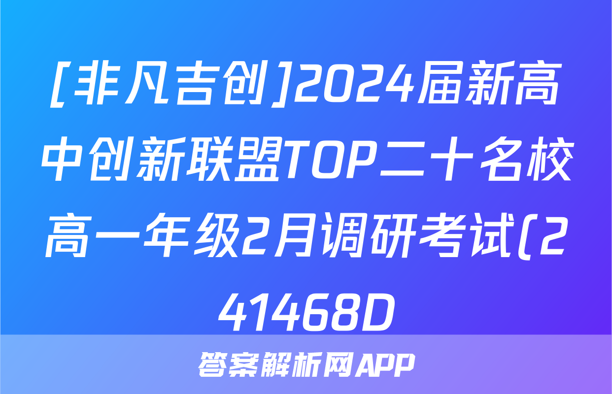 [非凡吉创]2024届新高中创新联盟TOP二十名校高一年级2月调研考试(241468D)语文答案正在持续更新,目前2026天舟高考答案网为大家整理了相关试题及答案,供大家查缺补漏,高效提升成绩。