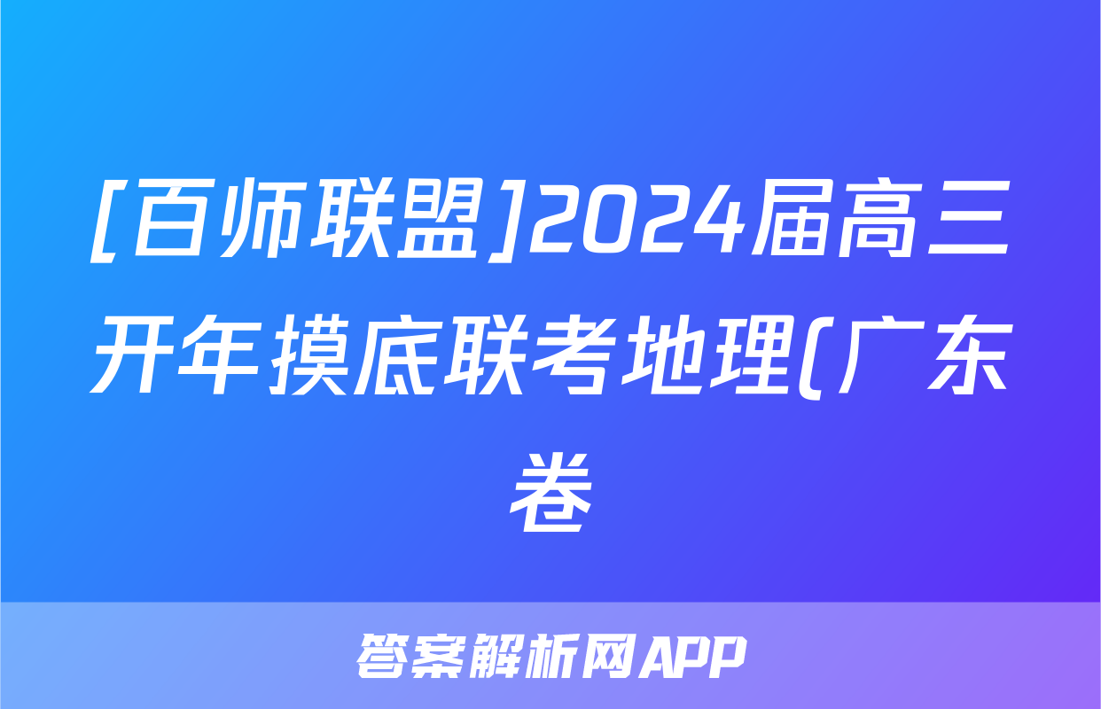 [百师联盟]2024届高三开年摸底联考地理(广东卷)答案正在持续更新,目前2026天舟高考答案网为大家整理了相关试题及答案,供大家查缺补漏,高效提升成绩。