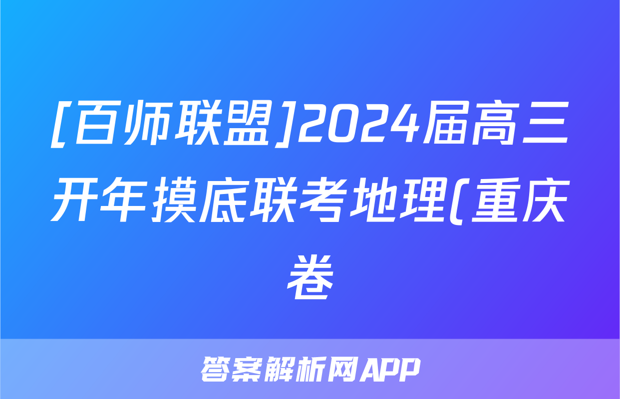[百师联盟]2024届高三开年摸底联考地理(重庆卷)试题正在持续更新,目前2026天舟高考答案网为大家整理了相关试题及答案,供大家查缺补漏,高效提升成绩。