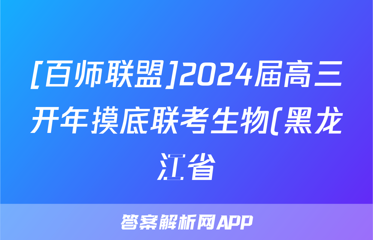 [百师联盟]2024届高三开年摸底联考生物(黑龙江省)答案正在持续更新,目前2026天舟高考答案网为大家整理了相关试题及答案,供大家查缺补漏,高效提升成绩。