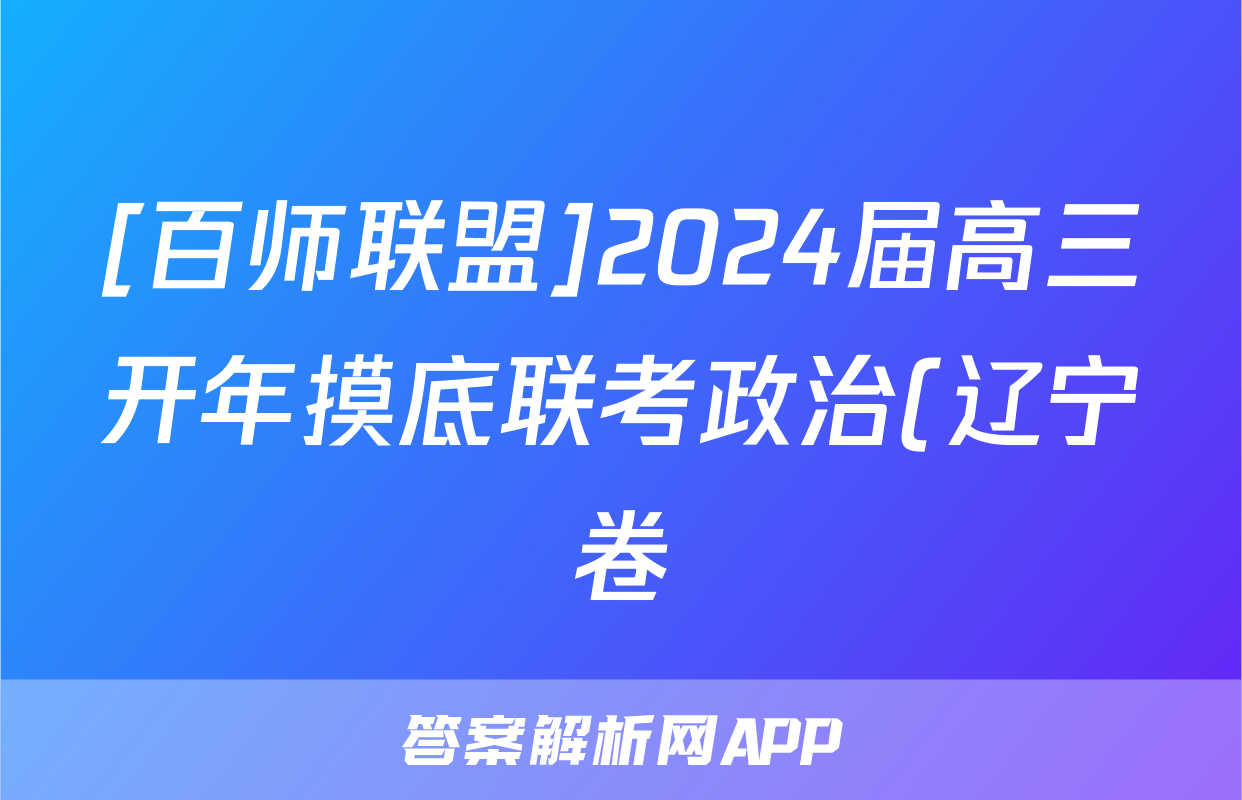 [百师联盟]2024届高三开年摸底联考政治(辽宁卷)答案正在持续更新,目前2026天舟高考答案网为大家整理了相关试题及答案,供大家查缺补漏,高效提升成绩。