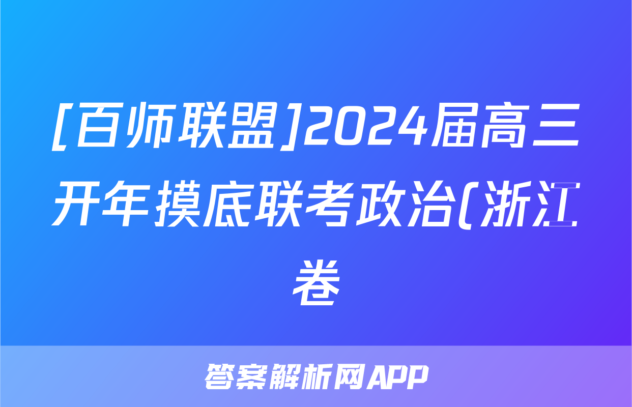 [百师联盟]2024届高三开年摸底联考政治(浙江卷)答案正在持续更新,目前2026天舟高考答案网为大家整理了相关试题及答案,供大家查缺补漏,高效提升成绩。