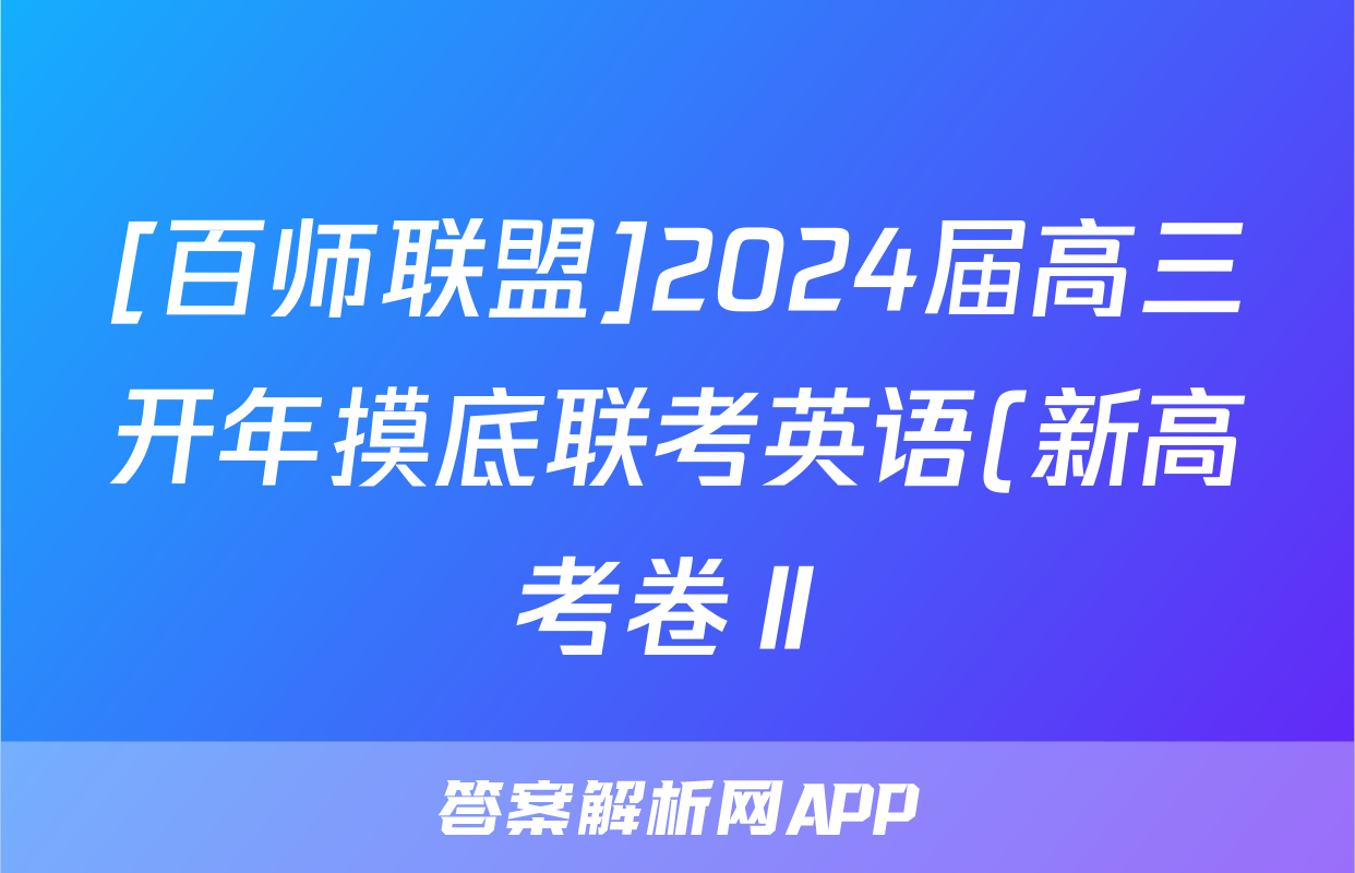[百师联盟]2024届高三开年摸底联考英语(新高考卷Ⅱ)试题正在持续更新,目前2026天舟高考答案网为大家整理了相关试题及答案,供大家查缺补漏,高效提升成绩。