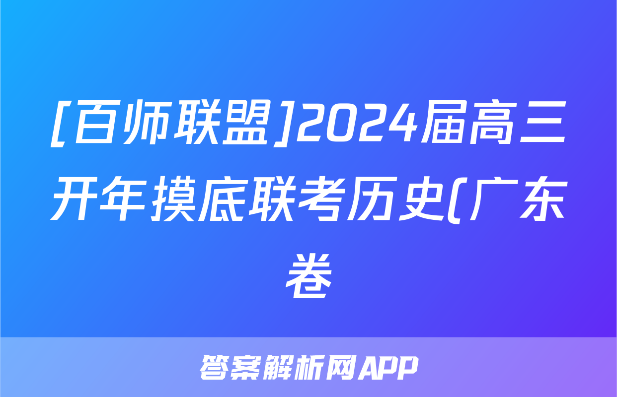 [百师联盟]2024届高三开年摸底联考历史(广东卷)试题正在持续更新,目前2026天舟高考答案网为大家整理了相关试题及答案,供大家查缺补漏,高效提升成绩。