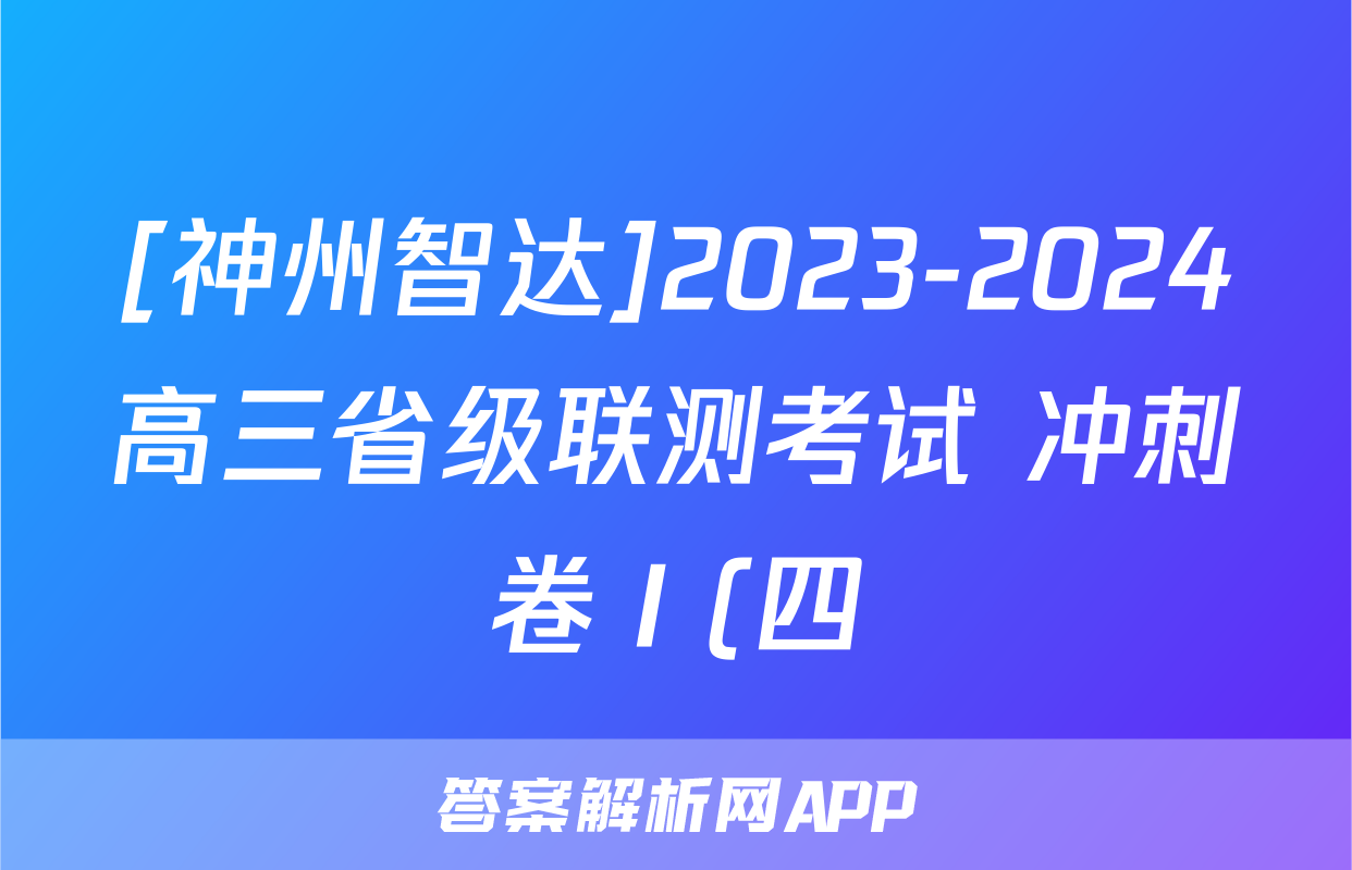 [神州智达]2023-2024高三省级联测考试 冲刺卷Ⅰ(四)4物理答案正在持续更新,目前2026天舟高考答案网为大家整理了相关试题及答案,供大家查缺补漏,高效提升成绩。