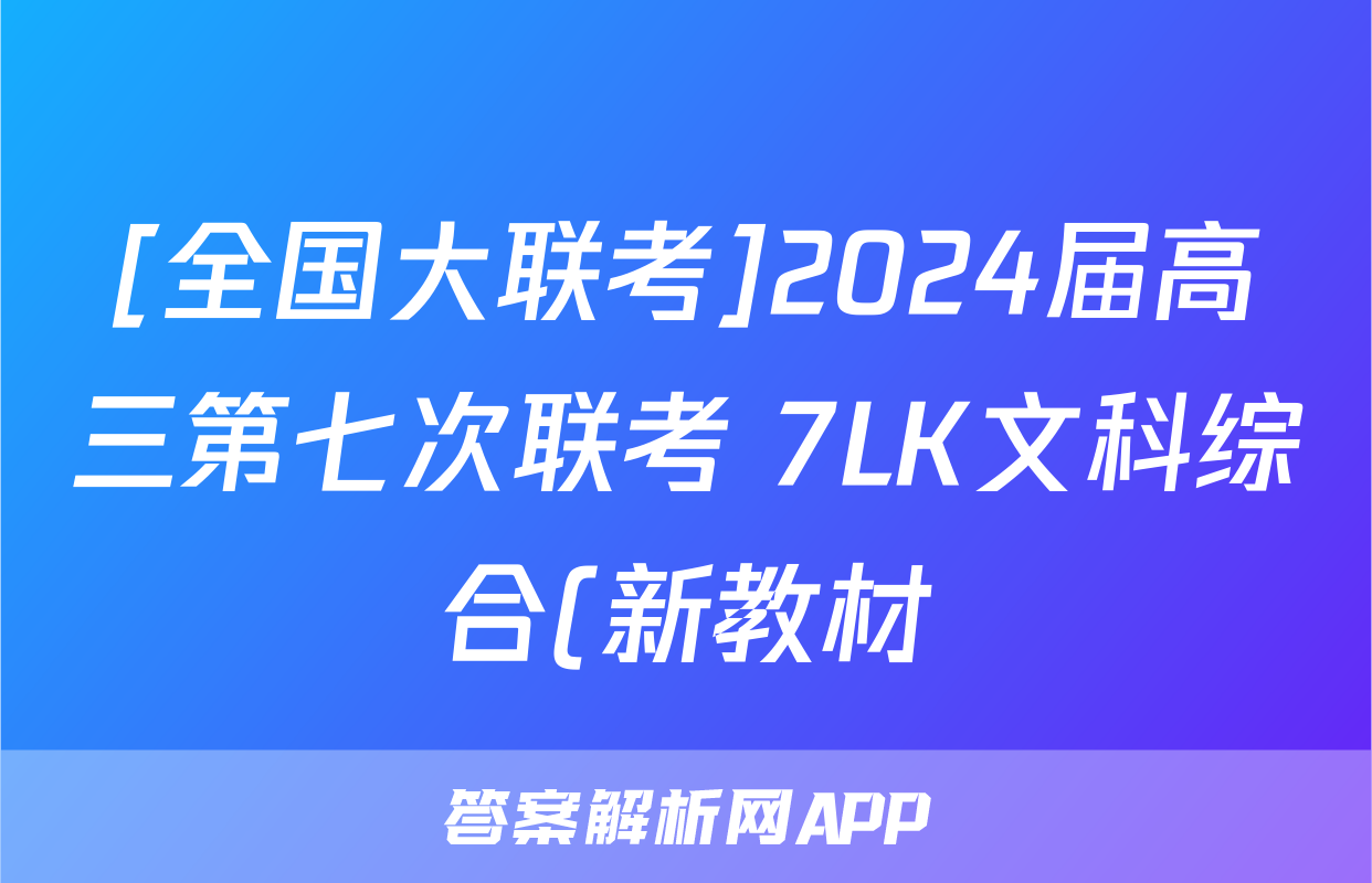 [全国大联考]2024届高三第七次联考 7LK文科综合(新教材)答案正在持续更新,目前2026天舟高考答案网为大家整理了相关试题及答案,供大家查缺补漏,高效提升成绩。
