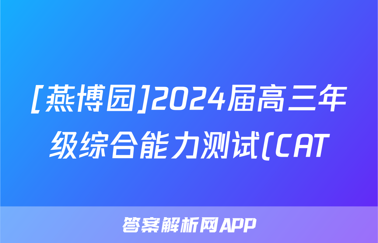 [燕博园]2024届高三年级综合能力测试(CAT)(一)1(2024.03)历史答案正在持续更新,目前2026天舟高考答案网为大家整理了相关试题及答案,供大家查缺补漏,高效提升成绩。