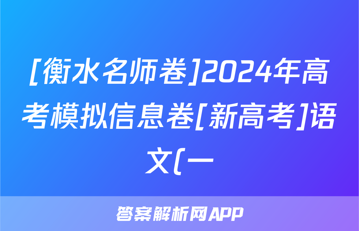 [衡水名师卷]2024年高考模拟信息卷[新高考]语文(一)1答案正在持续更新,目前2026天舟高考答案网为大家整理了相关试题及答案,供大家查缺补漏,高效提升成绩。