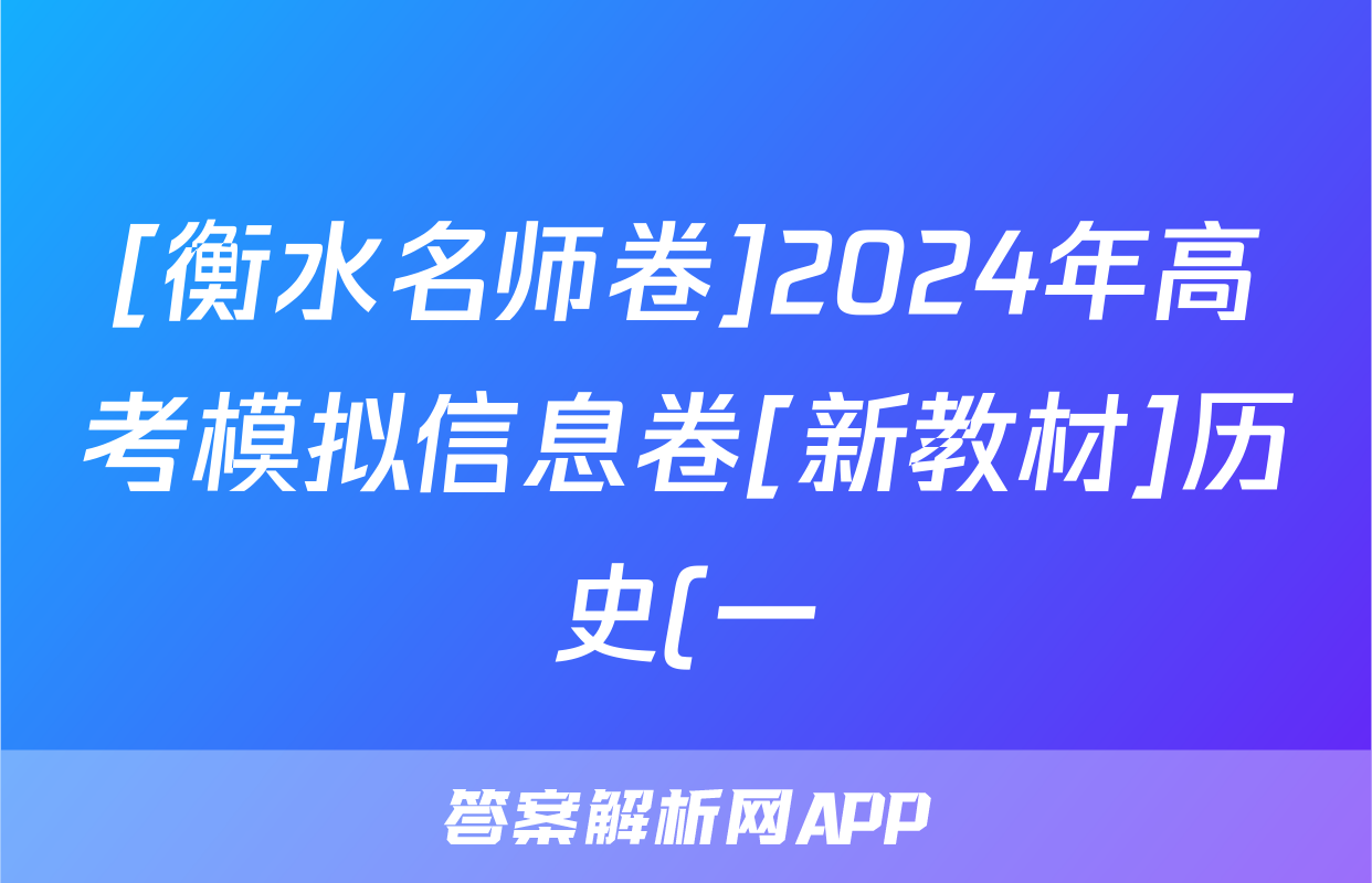 [衡水名师卷]2024年高考模拟信息卷[新教材]历史(一)1答案正在持续更新,目前2026天舟高考答案网为大家整理了相关试题及答案,供大家查缺补漏,高效提升成绩。