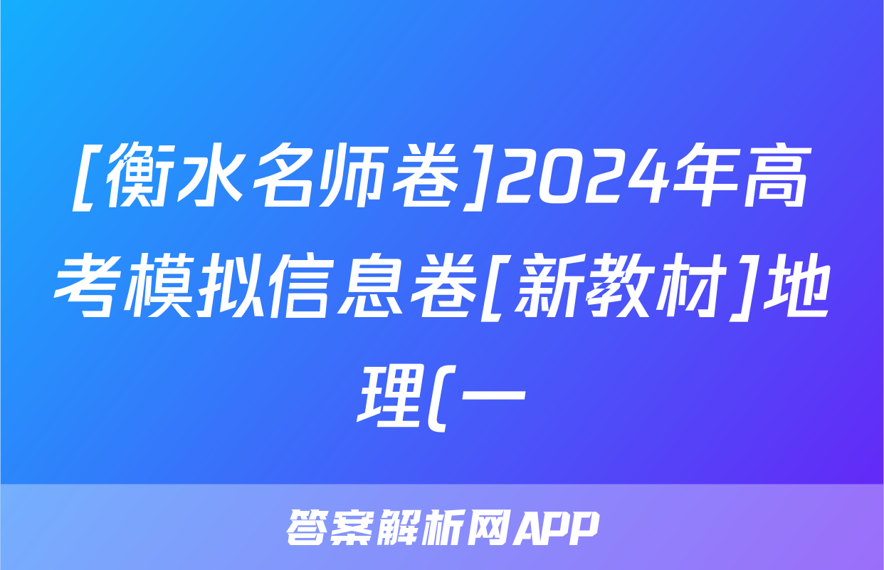 [衡水名师卷]2024年高考模拟信息卷[新教材]地理(一)1试题正在持续更新,目前2026天舟高考答案网为大家整理了相关试题及答案,供大家查缺补漏,高效提升成绩。