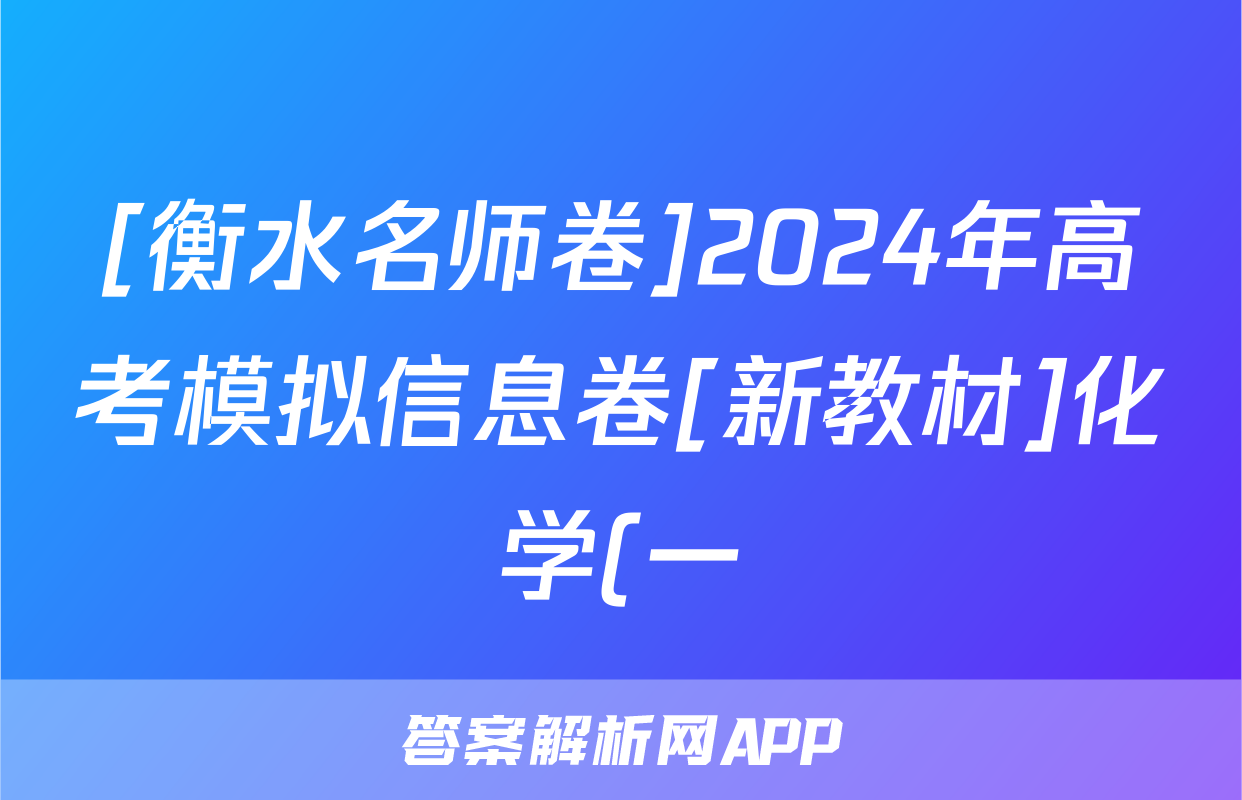 [衡水名师卷]2024年高考模拟信息卷[新教材]化学(一)1试题正在持续更新,目前2026天舟高考答案网为大家整理了相关试题及答案,供大家查缺补漏,高效提升成绩。