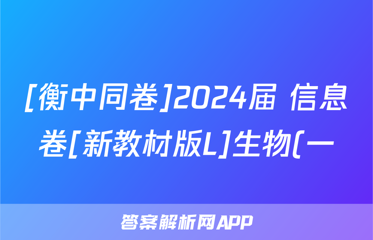 [衡中同卷]2024届 信息卷[新教材版L]生物(一)1试题正在持续更新,目前2026天舟高考答案网为大家整理了相关试题及答案,供大家查缺补漏,高效提升成绩。
