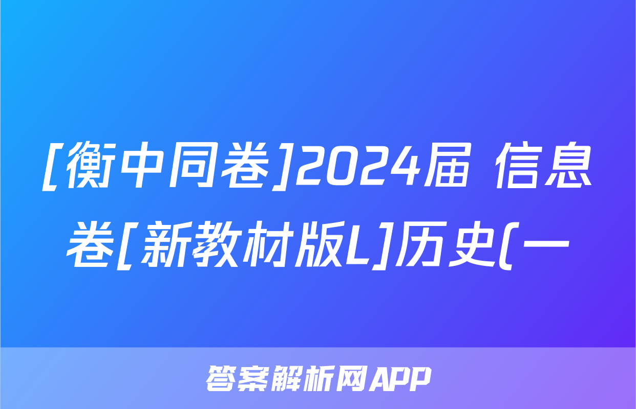 [衡中同卷]2024届 信息卷[新教材版L]历史(一)1答案正在持续更新,目前2026天舟高考答案网为大家整理了相关试题及答案,供大家查缺补漏,高效提升成绩。
