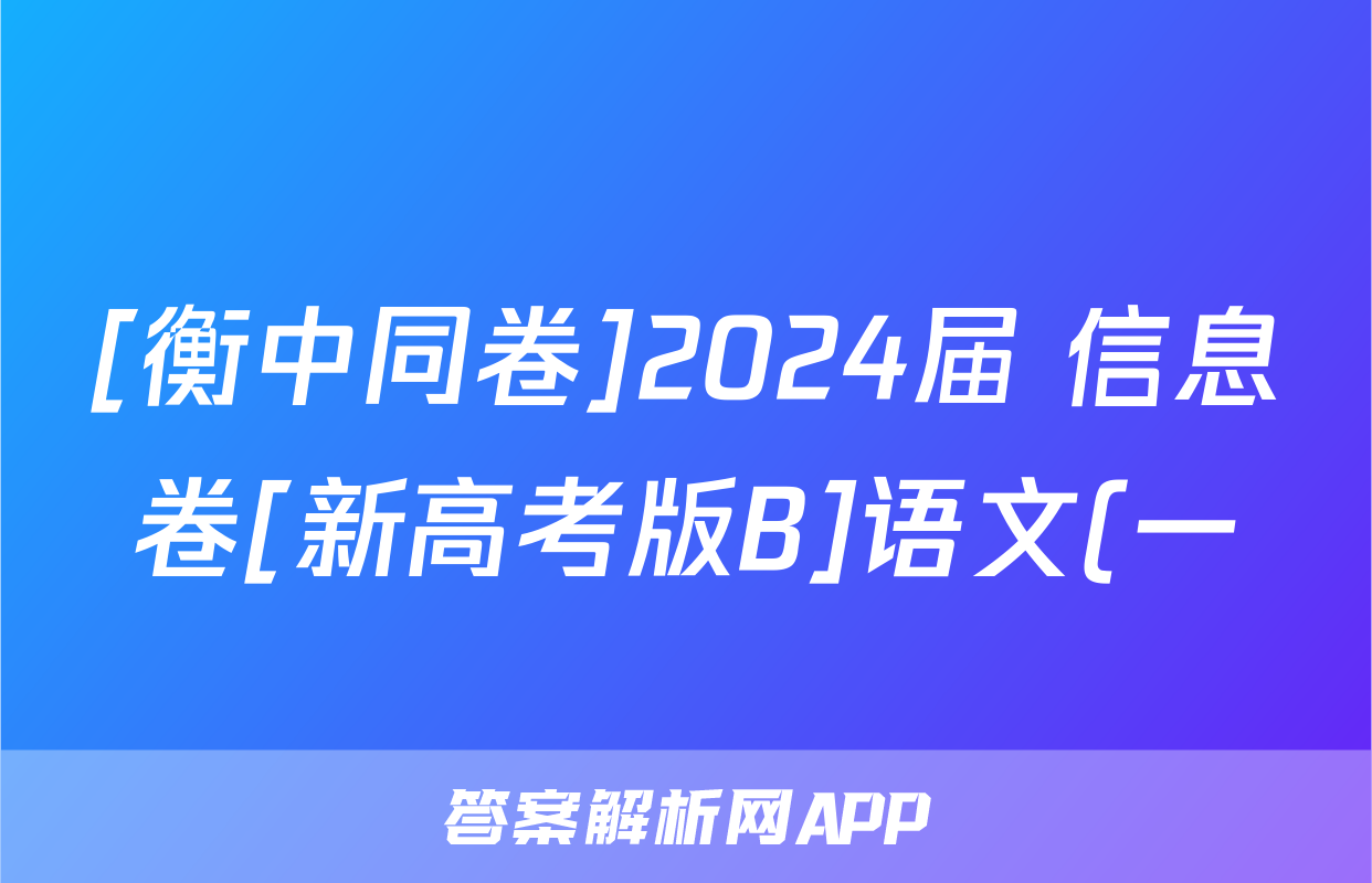 [衡中同卷]2024届 信息卷[新高考版B]语文(一)1答案正在持续更新,目前2026天舟高考答案网为大家整理了相关试题及答案,供大家查缺补漏,高效提升成绩。
