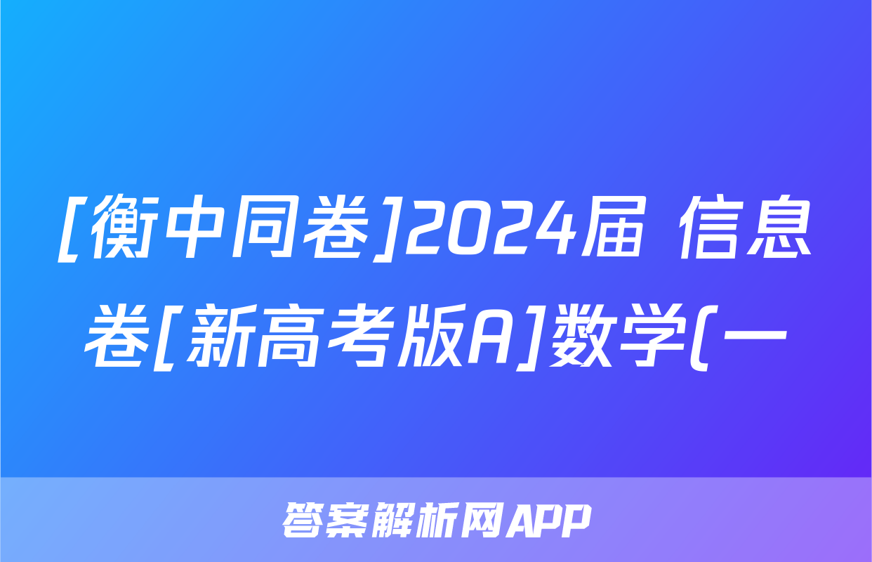 [衡中同卷]2024届 信息卷[新高考版A]数学(一)1答案正在持续更新,目前2026天舟高考答案网为大家整理了相关试题及答案,供大家查缺补漏,高效提升成绩。