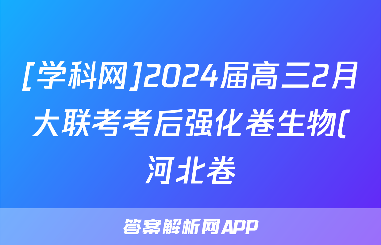 [学科网]2024届高三2月大联考考后强化卷生物(河北卷)答案正在持续更新,目前2026天舟高考答案网为大家整理了相关试题及答案,供大家查缺补漏,高效提升成绩。