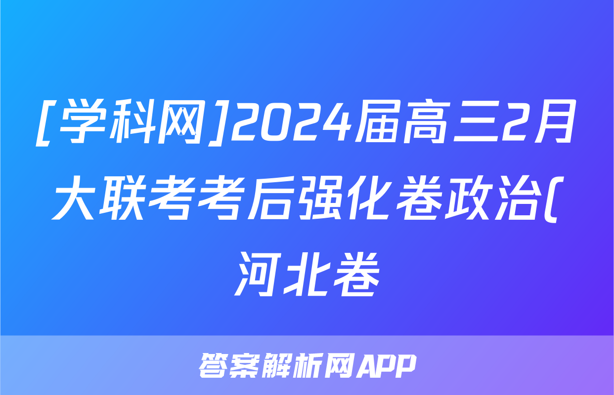 [学科网]2024届高三2月大联考考后强化卷政治(河北卷)试题正在持续更新,目前2026天舟高考答案网为大家整理了相关试题及答案,供大家查缺补漏,高效提升成绩。